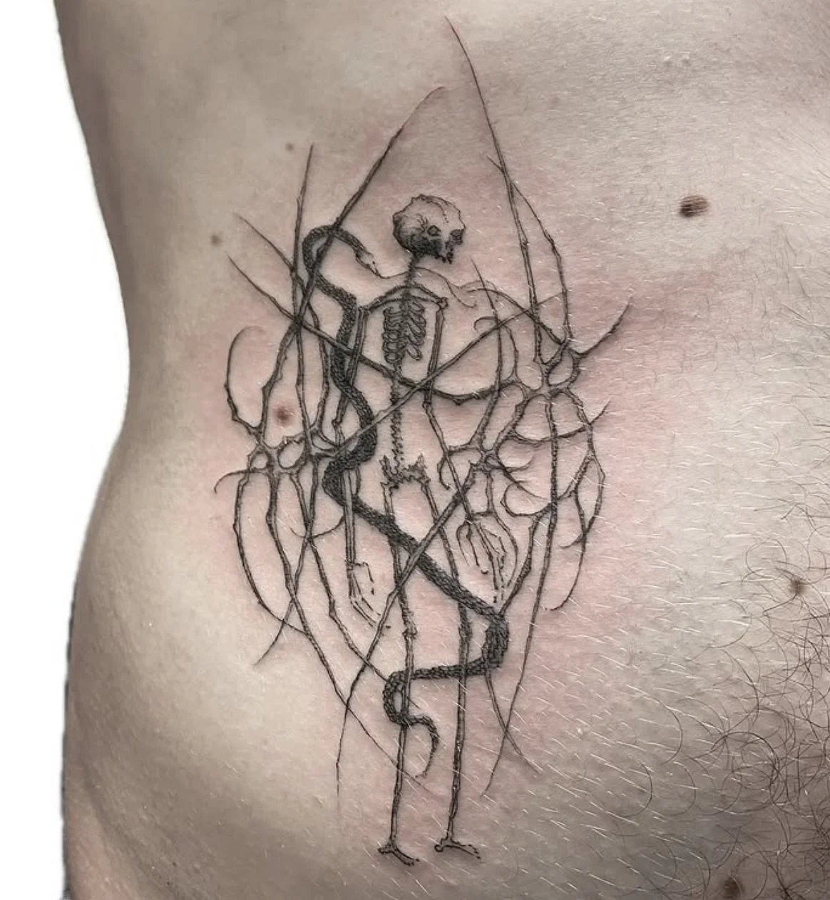 Some of my favorite things to make are in the themes of dark fantasy and abstract sigilism. I’m always stoked to create custom designs and realize a concept as a tattoo.